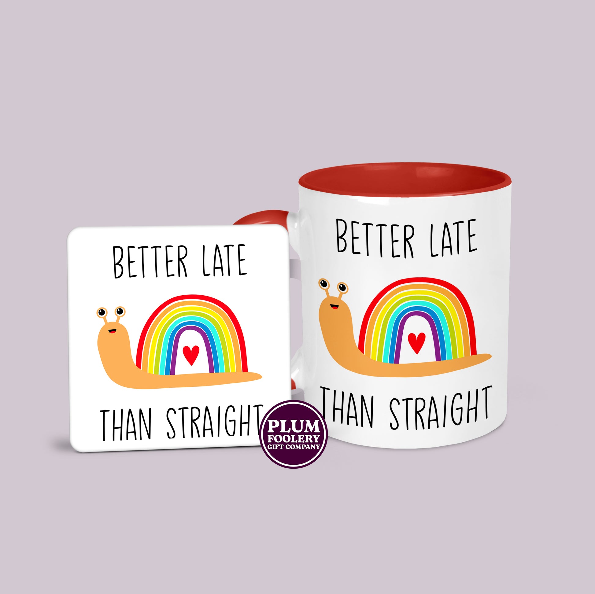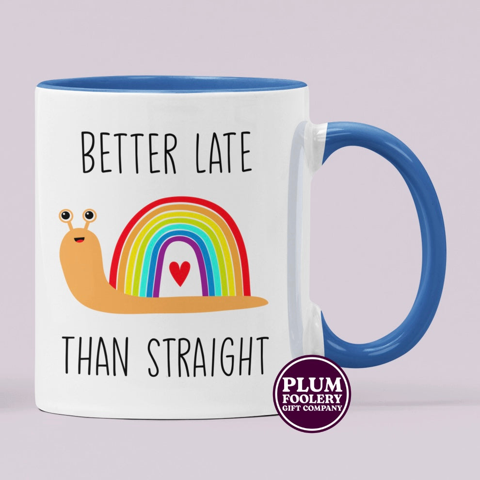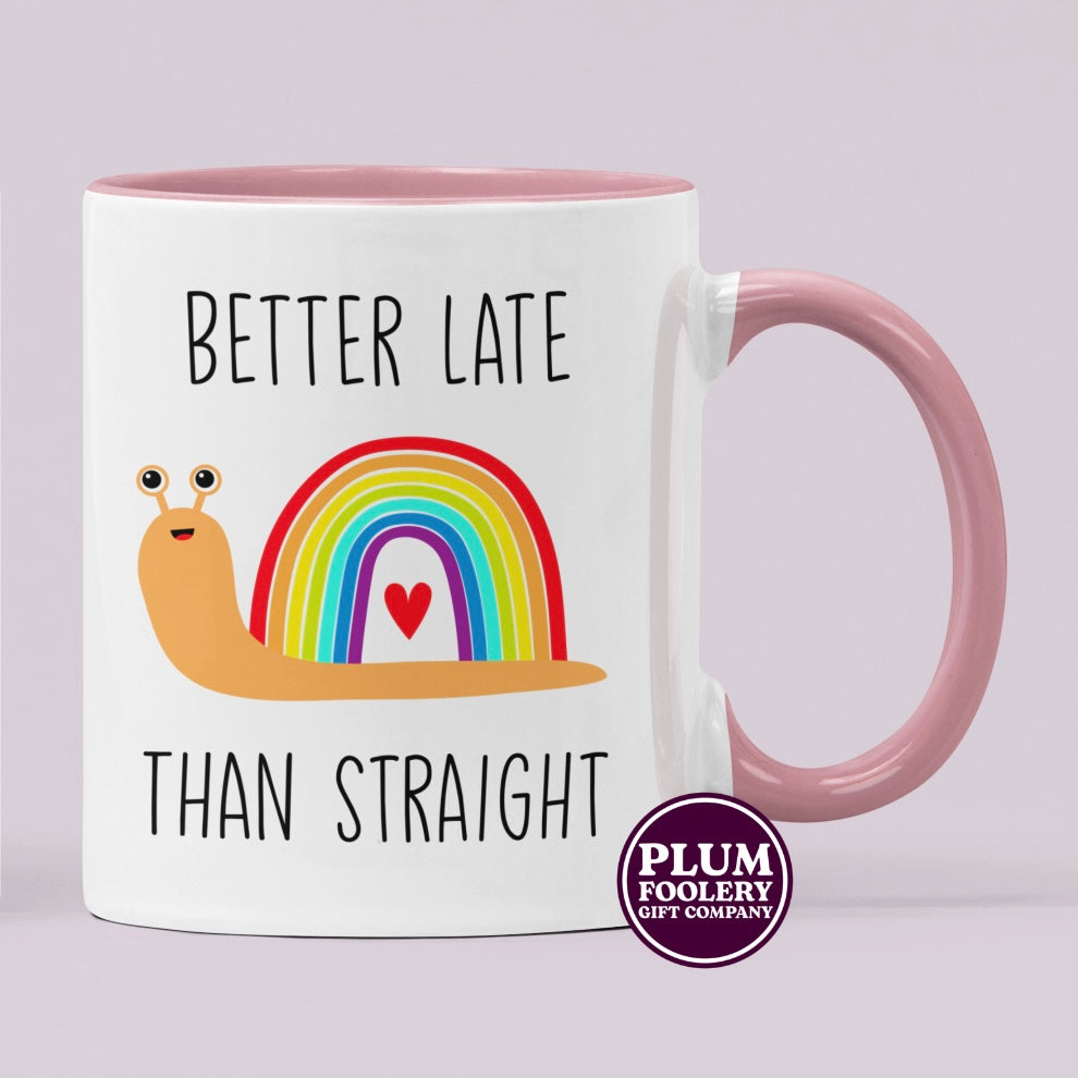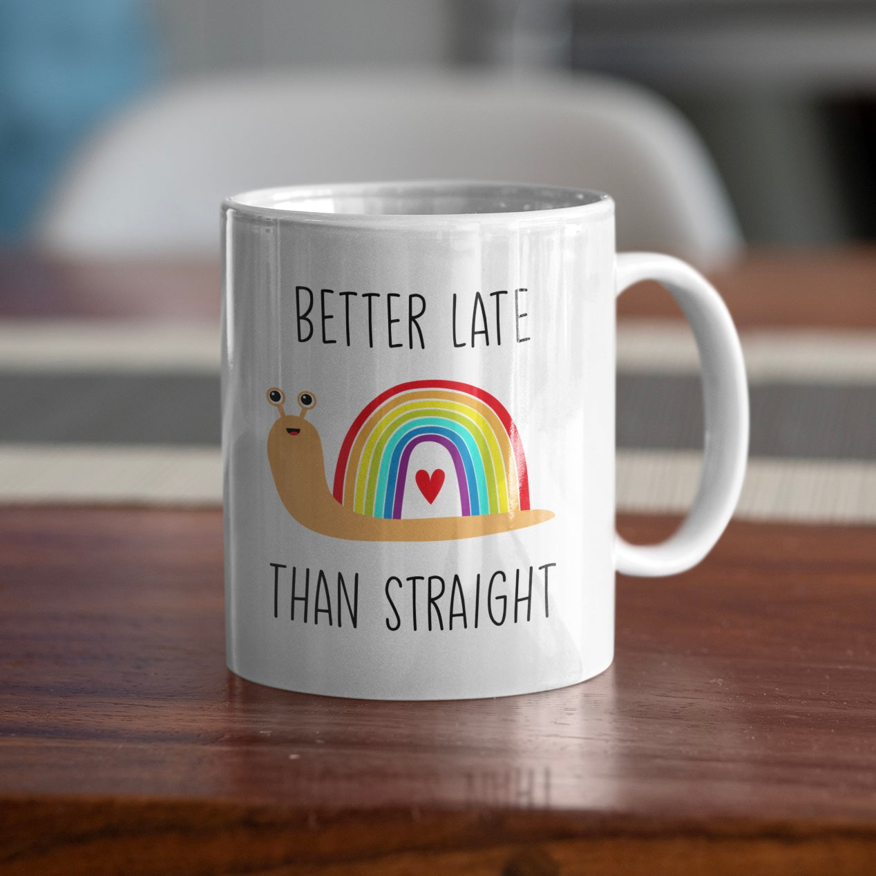 Celebrate Pride, self-acceptance, and love with this adorable “Better Late Than Straight” mug! Featuring a cute rainbow snail design, this handmade UK 11oz ceramic coffee cup is perfect for those embracing their journey, coming out later in life, or simply showing off their pride.