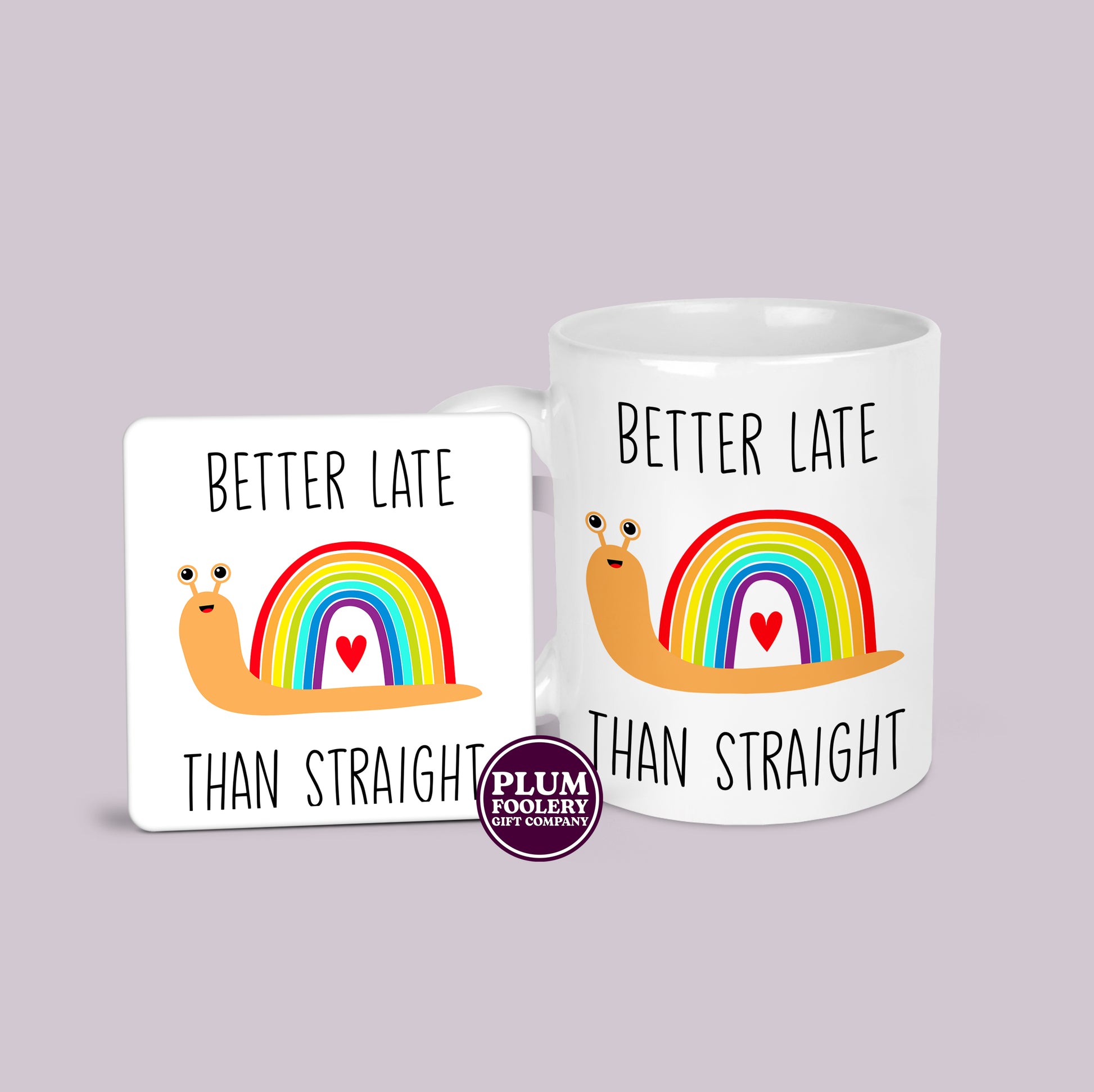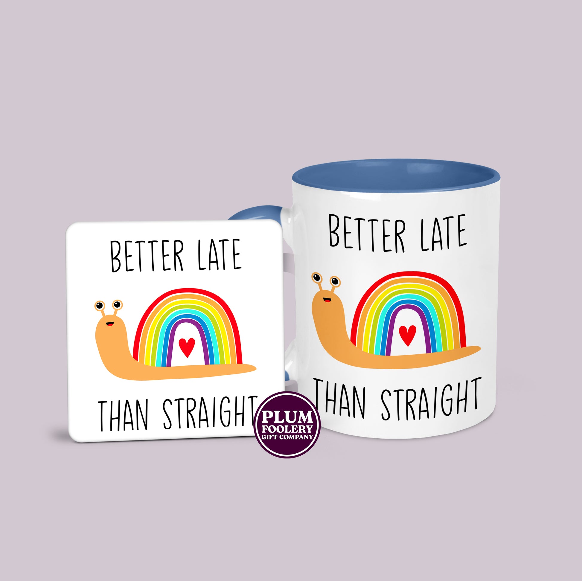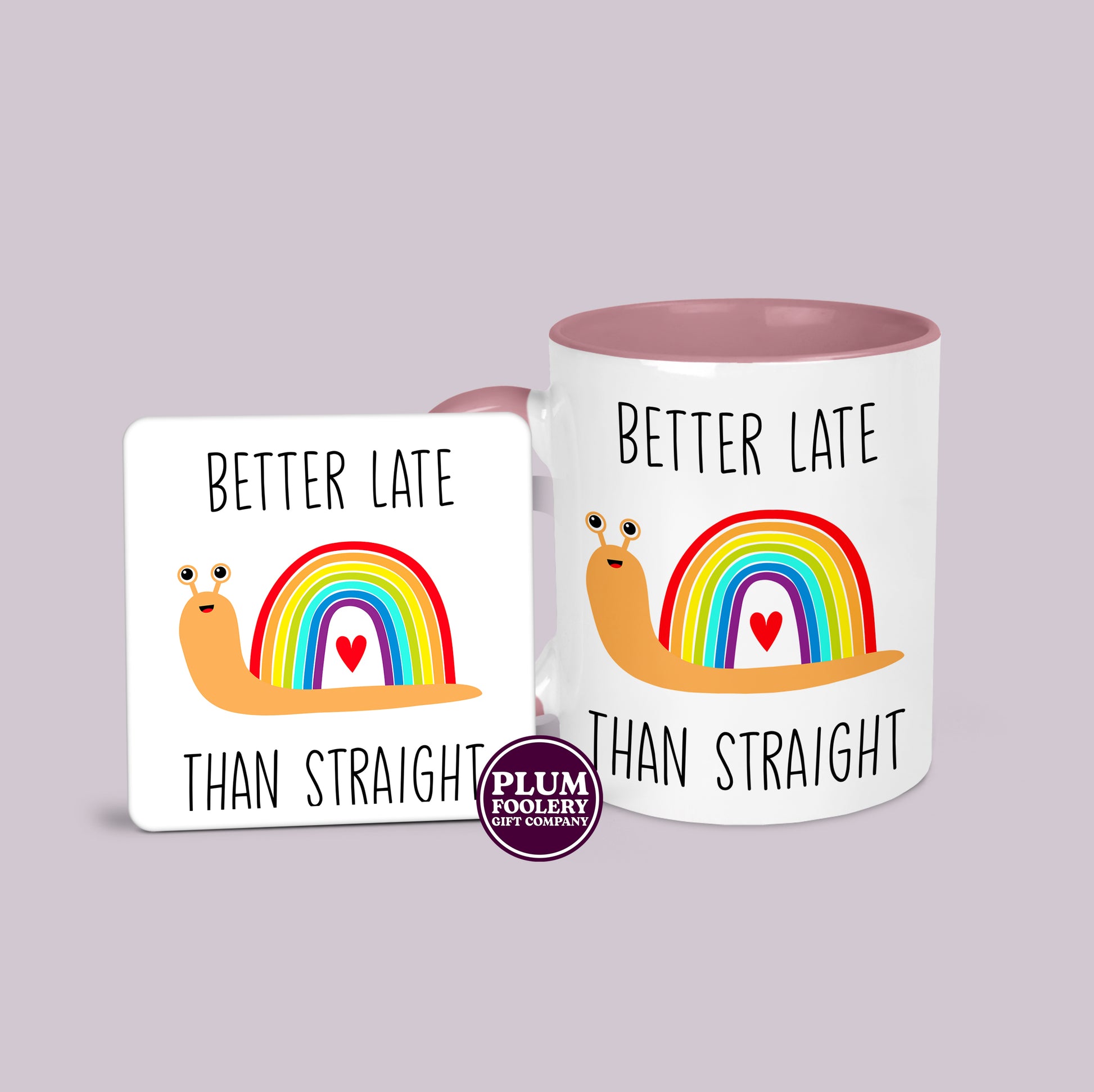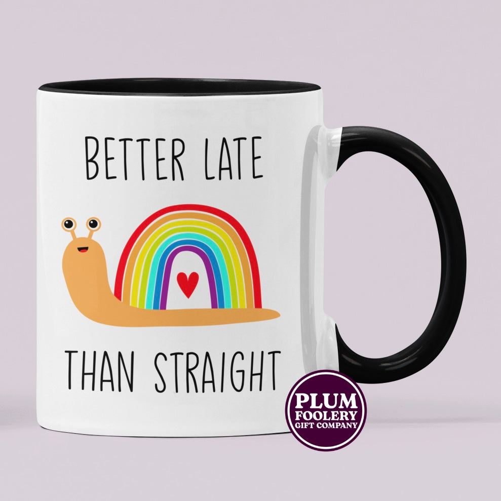 Celebrate Pride, self-acceptance, and love with this adorable “Better Late Than Straight” mug! Featuring a cute rainbow snail design, this handmade UK 11oz ceramic coffee cup is perfect for those embracing their journey, coming out later in life, or simply showing off their pride.