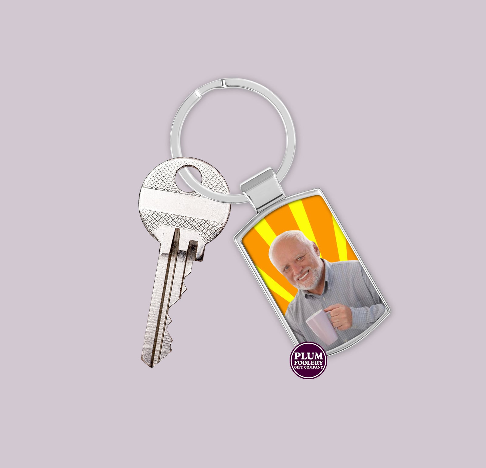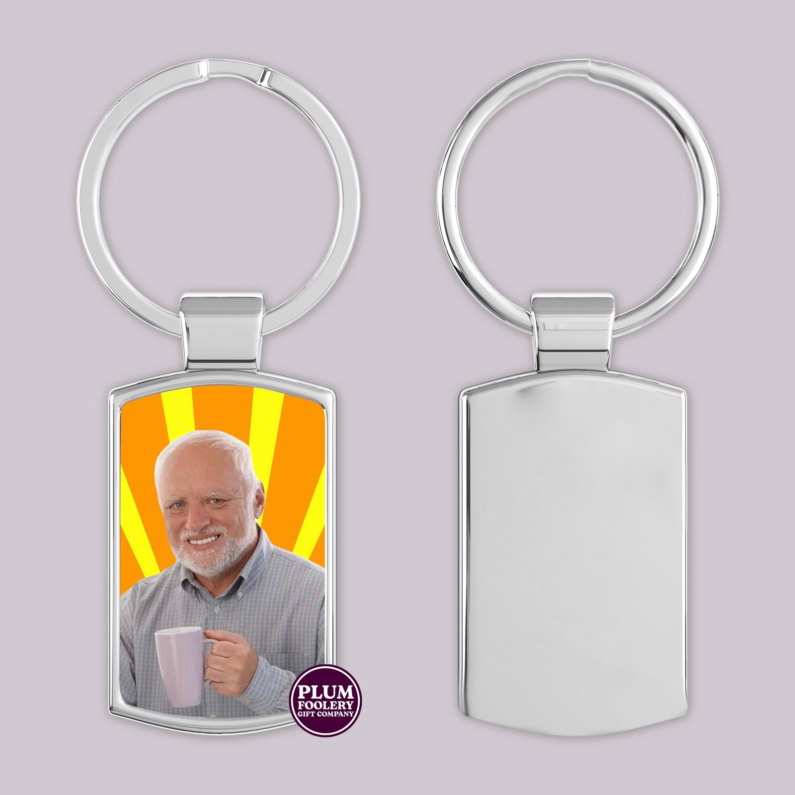 💜 Funny Meme Keyring – Features the viral “Hide the Pain Harold” meme for a humorous touch.