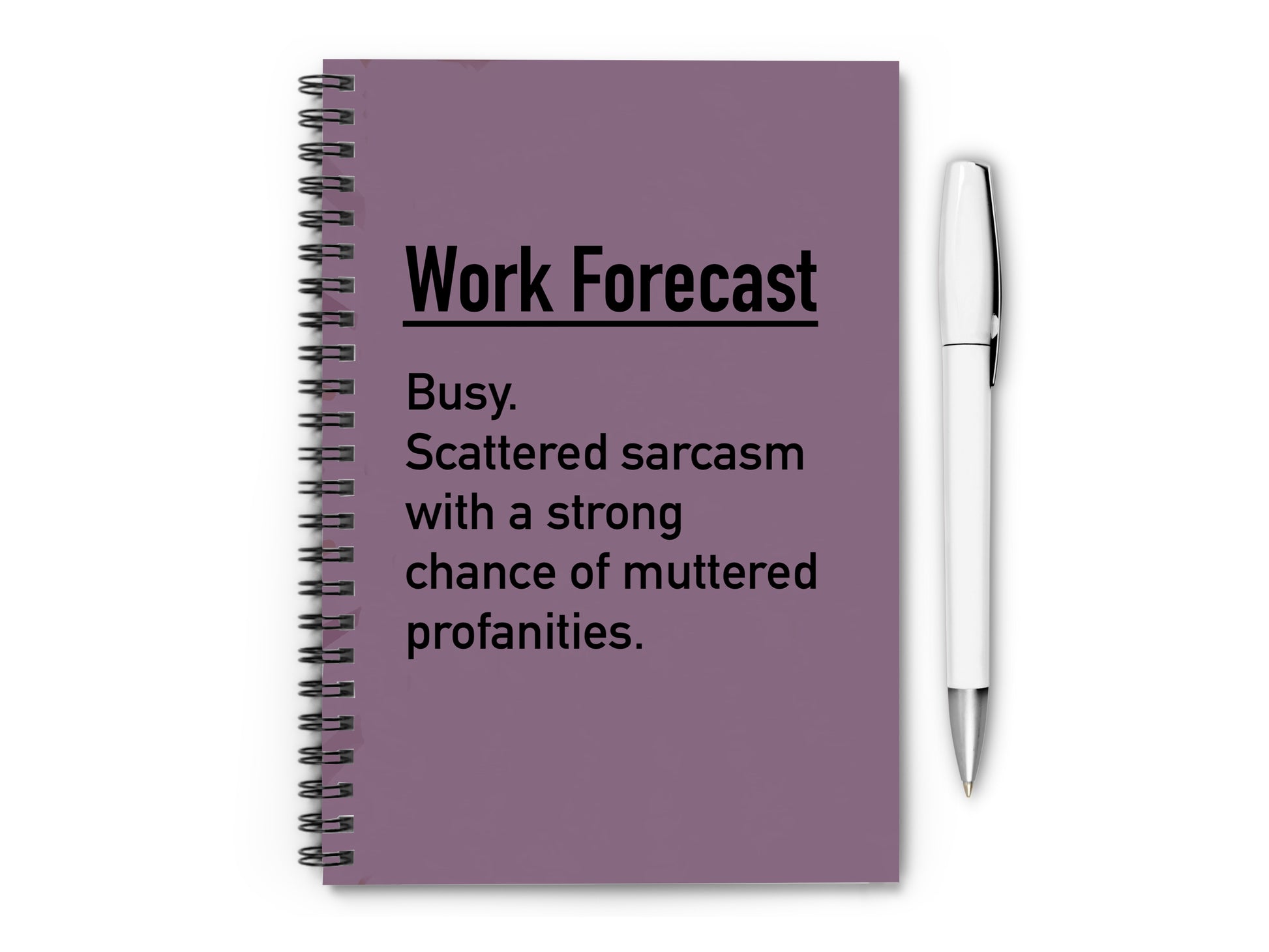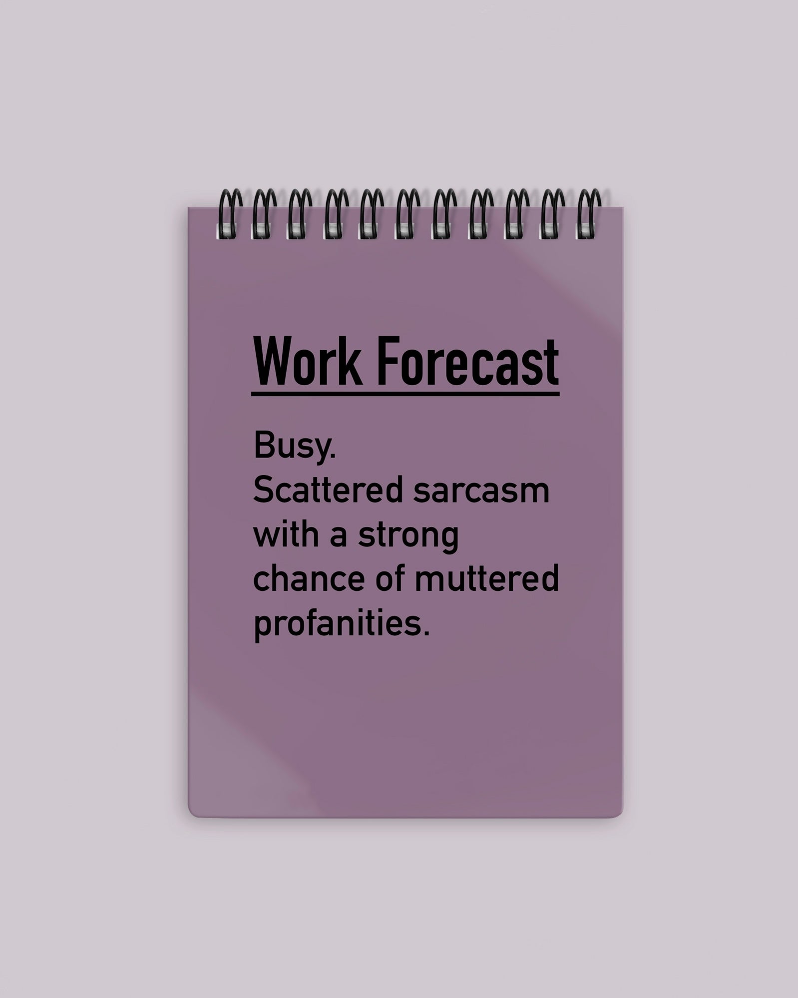 Stay organised and entertained with this hilarious “Work Forecast” notebook, perfect for any busy professional or office worker. Designed with a durable plastic cover, this notebook is as practical as it is witty. Available in two convenient sizes—A5 lined for structured notes or A6 plain for creative freedom—it’s ideal for jotting down ideas, lists, or your sarcastic thoughts. Handmade in the UK, it makes a great gift for colleagues, friends, or anyone who appreciates a touch of humour during their workday.