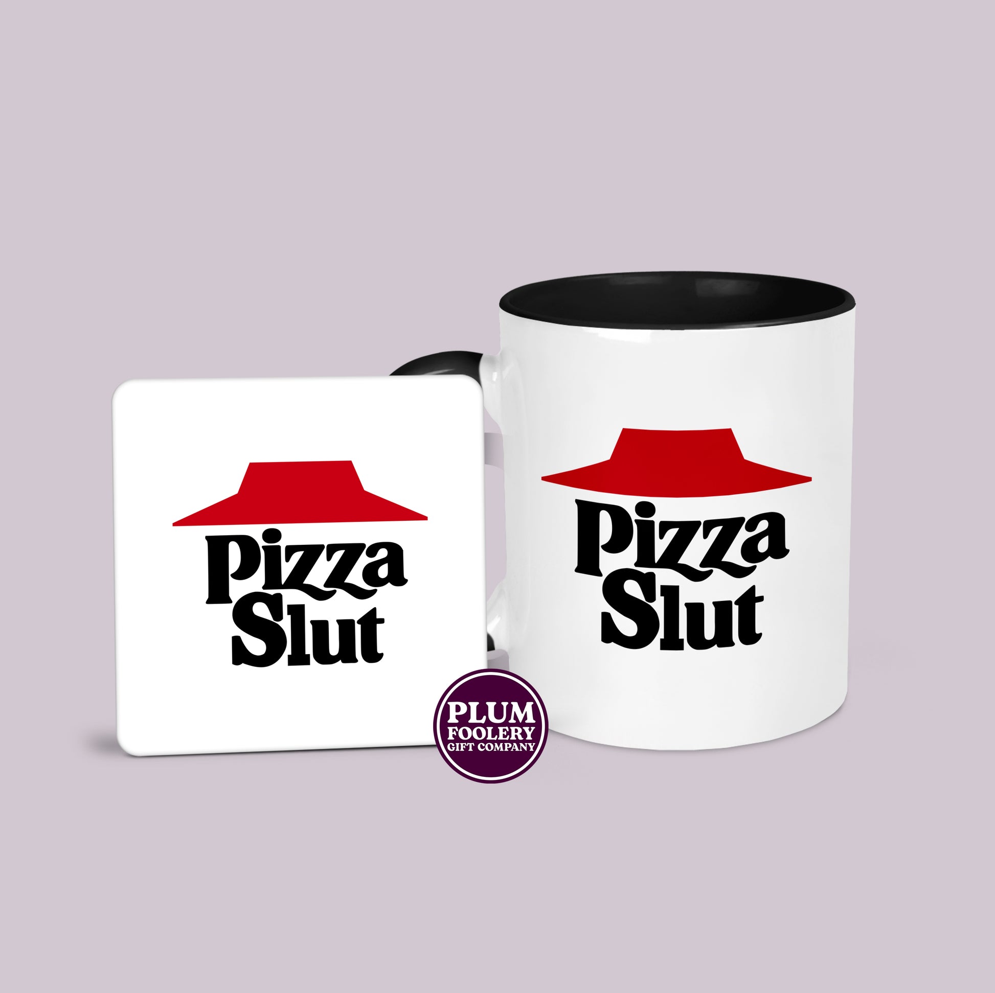 Satisfy your cravings for laughs and late-night slices with this cheeky “Pizza Slut” mug – the perfect gift for that friend who never says no to pizza. Featuring a bold parody-style pizza logo and punchy lettering, it’s ideal for anyone with a sense of humour and a serious pizza obsession.