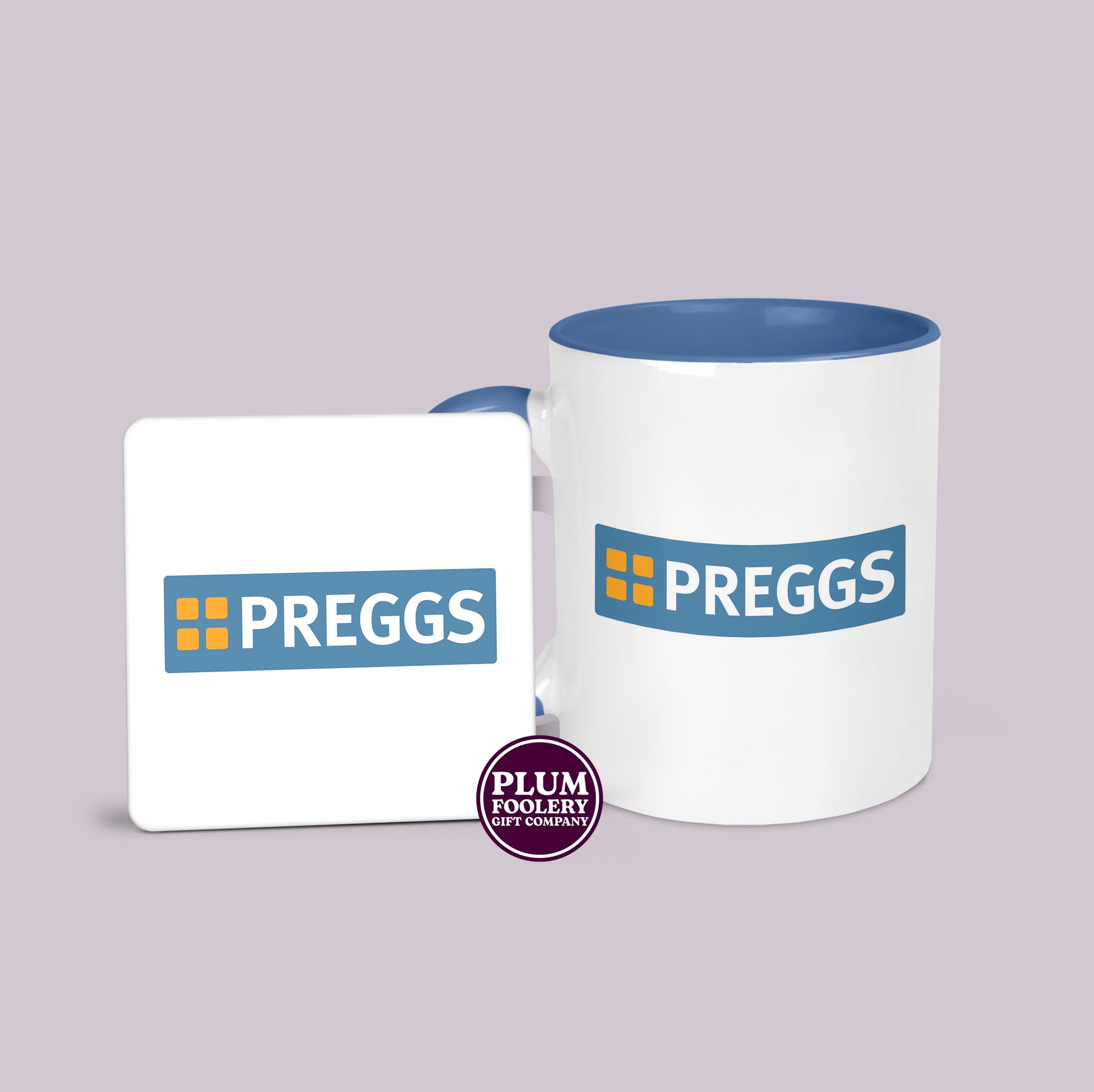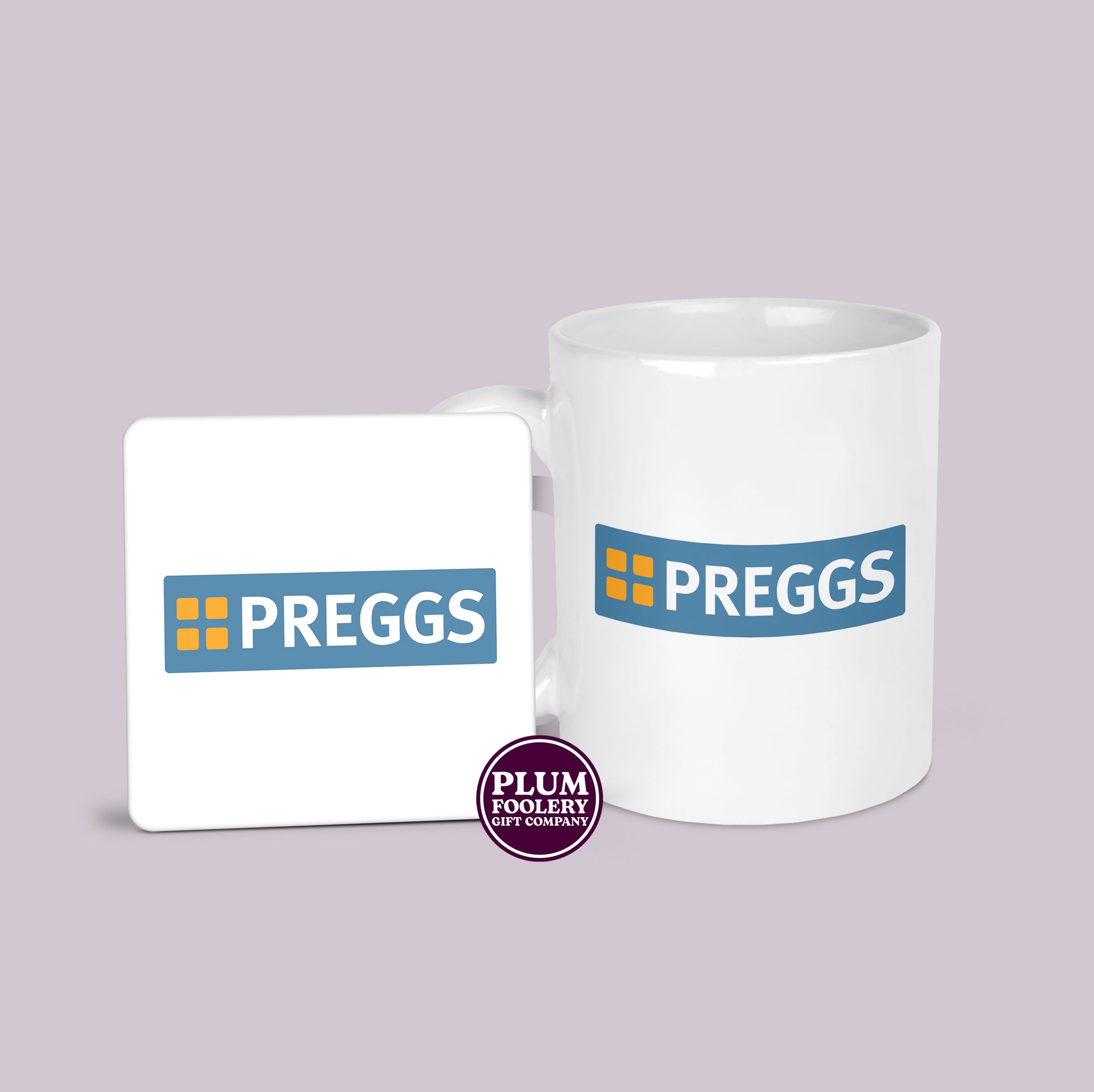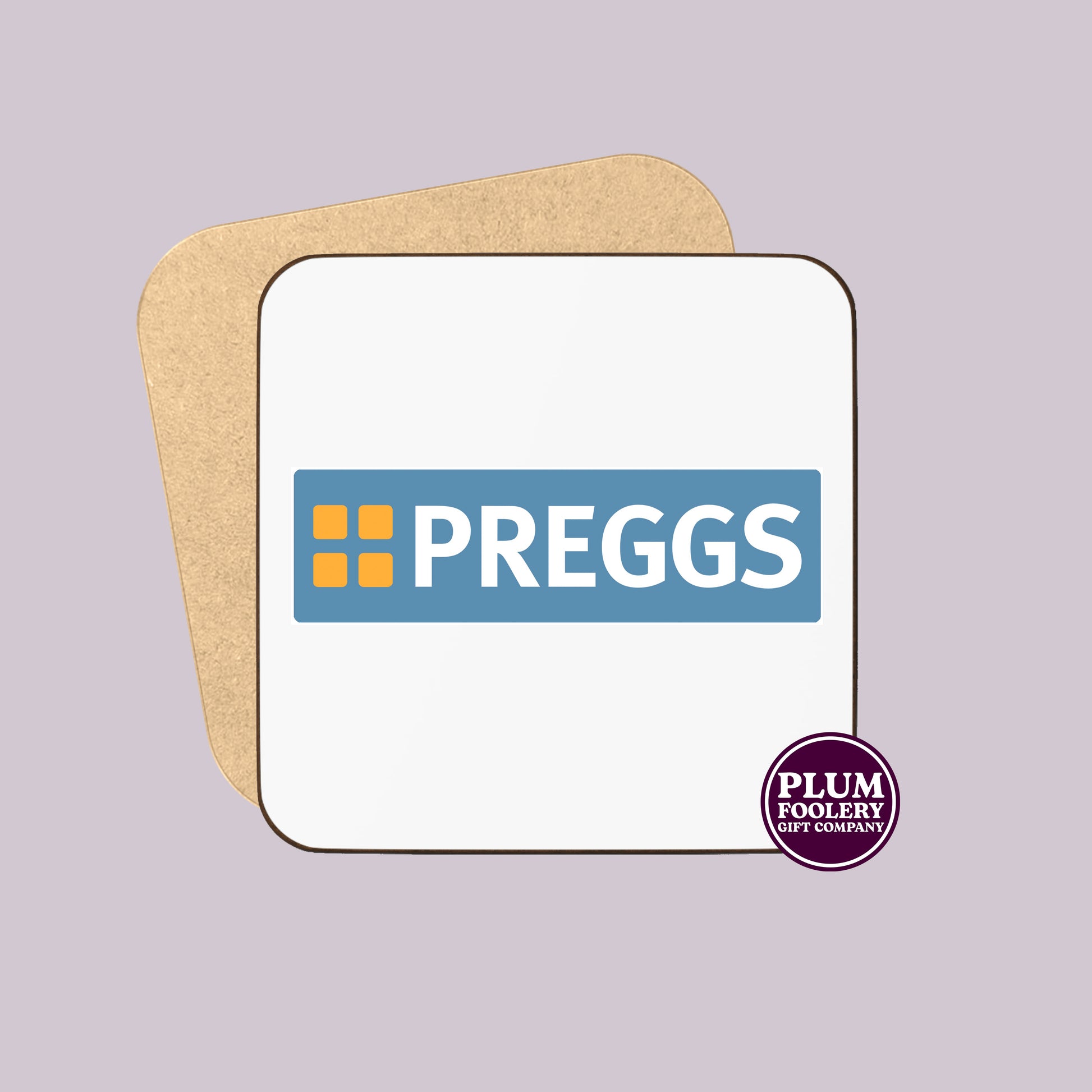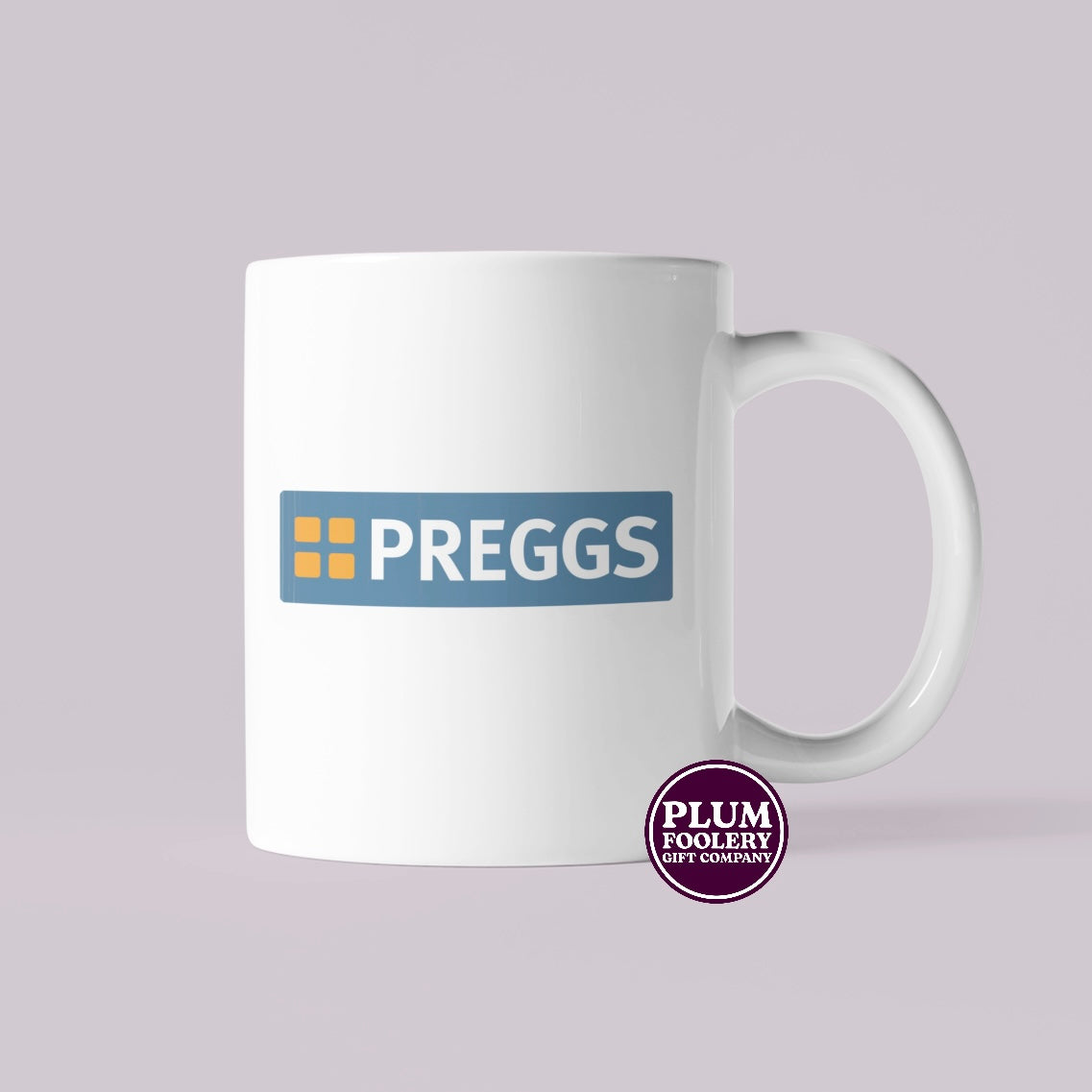 Greggs-Inspired Parody: A playful take on the iconic Greggs logo, this mug features the word “Preggs” in a fun, tongue-in-cheek design.